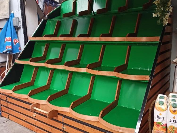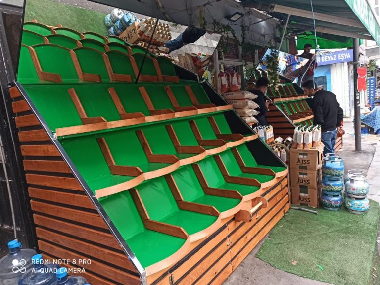 Ahşap Tablalı Manav Tezgahı Üç Katlı